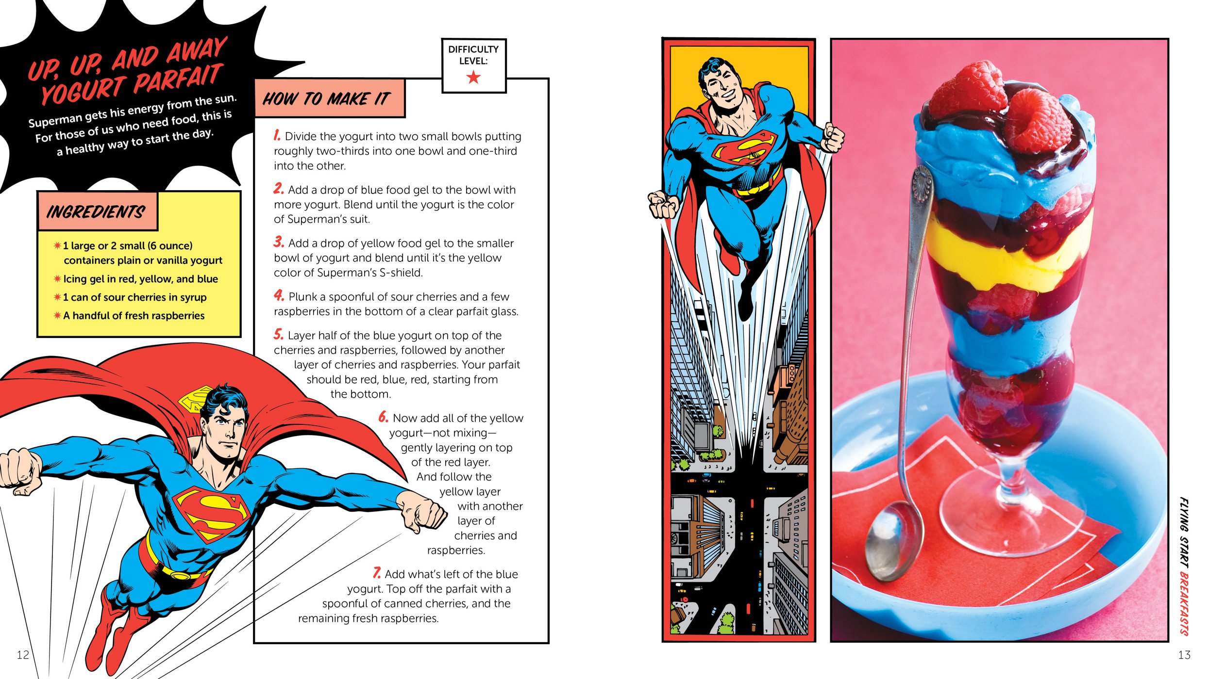 The DC Super Hero Cookbook is packed with simple, fun recipes designed to evoke kids' favorite Super Heroes. More than fifty easy, tasty recipes inspired by beloved DC Comics characters are fun for kids to prepare and to eat! From the Up, Up and Away Parfait and Green Arrow Fruit Kebobs to Holy Guacamole and the Martian Manhunter Malted, the colorfully presented recipes are perfect for making everyday family meals extra special, as well as for themed parties. Simple, step-by-step instructions are easy to replicate and DC Super Hero symbol stencils and character cut-outs make it easy to style every dish